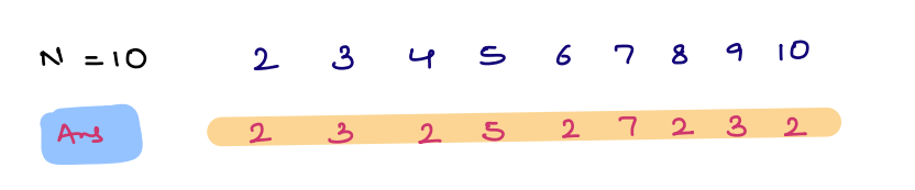 - Smallest Prime Factors: The array will now hold the smallest prime factors for all numbers from 2 to N.