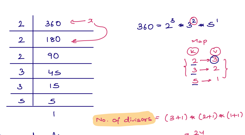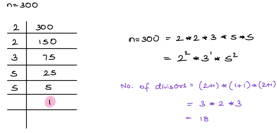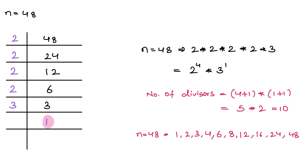 - Store or Output Results: Store or output the number of factors/divisors for each number.