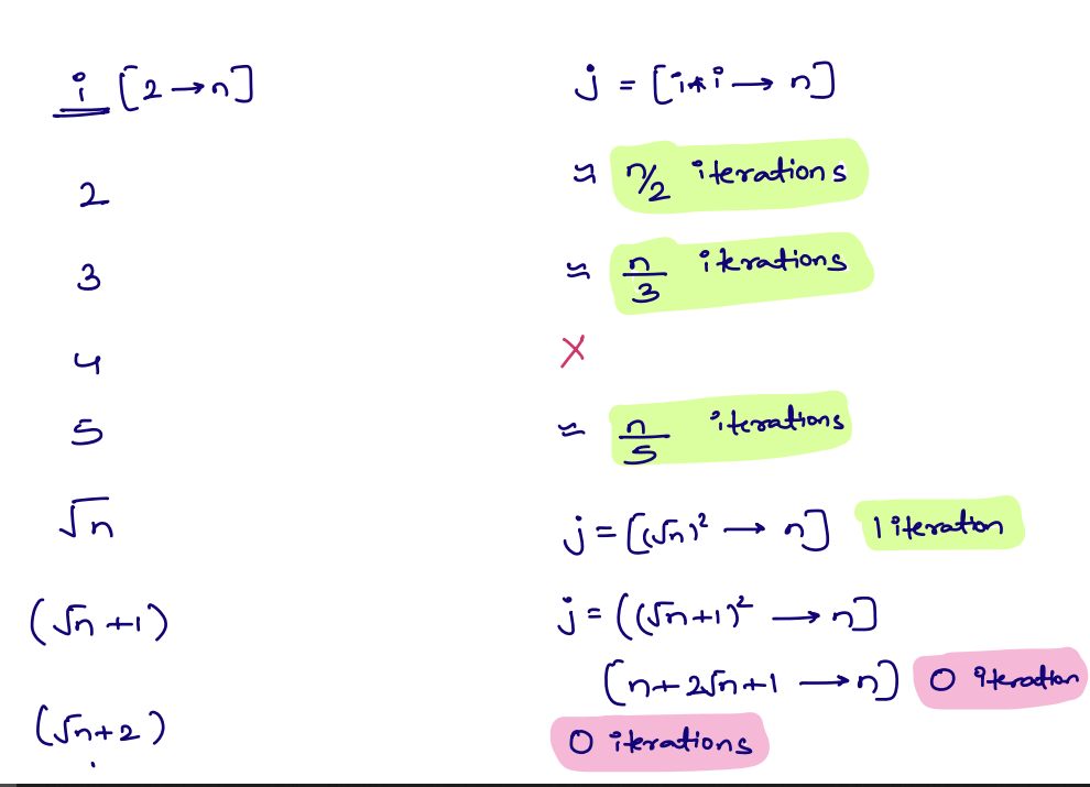 - Time Complexity (TC): The time complexity of the given function is \(O(n√n)\), as it iterates through numbers from 2 to N and for each number, it checks divisibility up to the square root of that number.