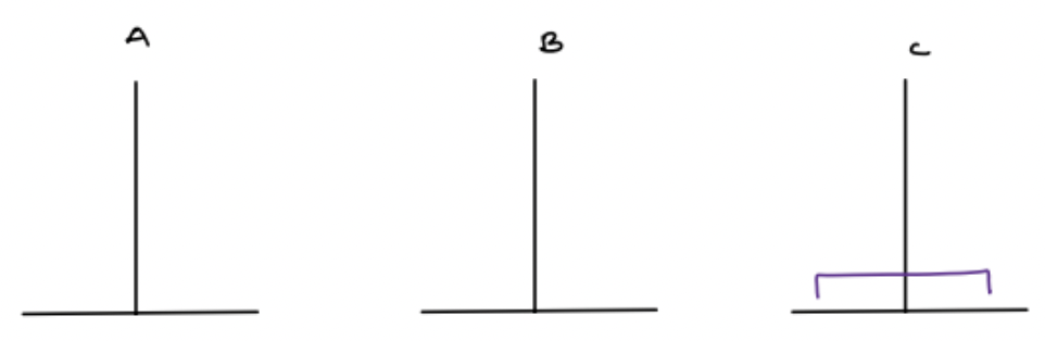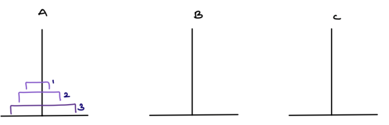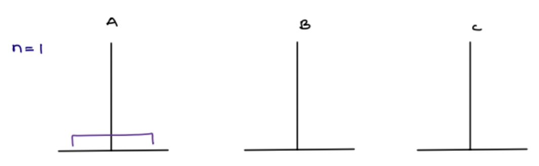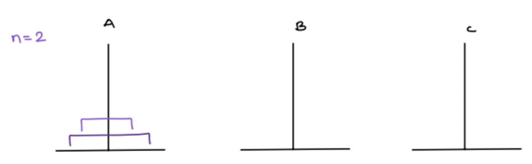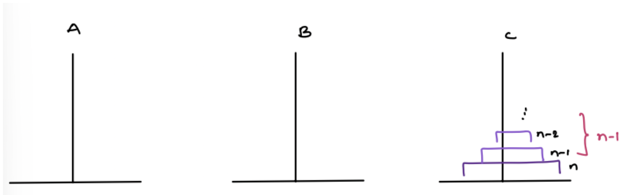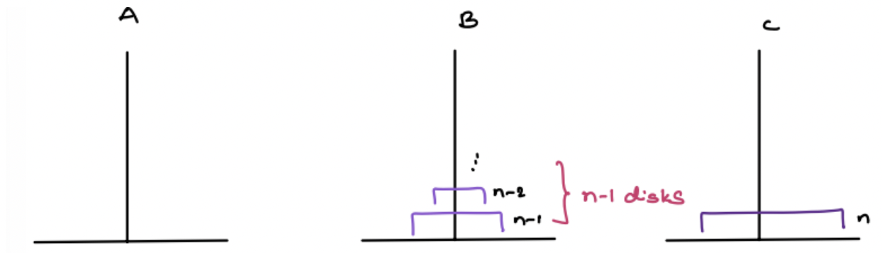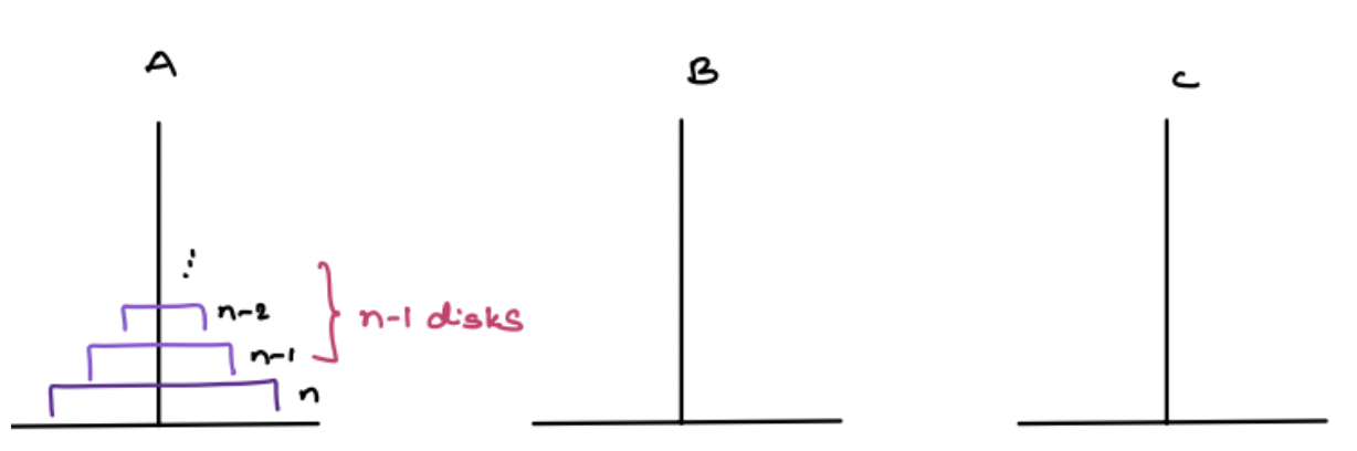 2. TOH(n - 1, A, C, B); // move n-1 disks A->B
