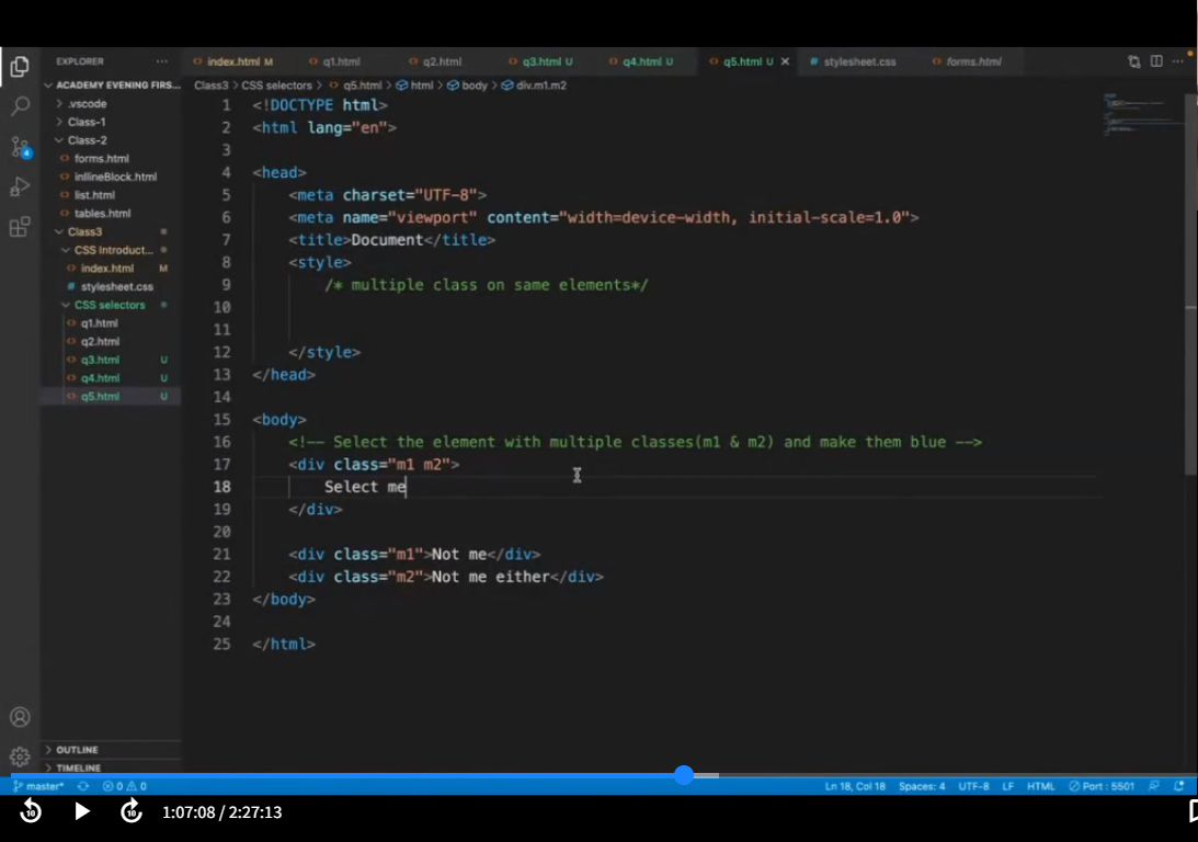 - Here we need to select multiple classes m1 and m2 and make them blue.