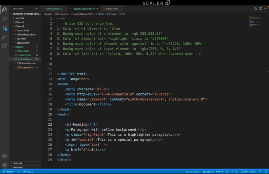Now, let us summarize the session and use all the previous selectors and color properties to solve this problem shown below: